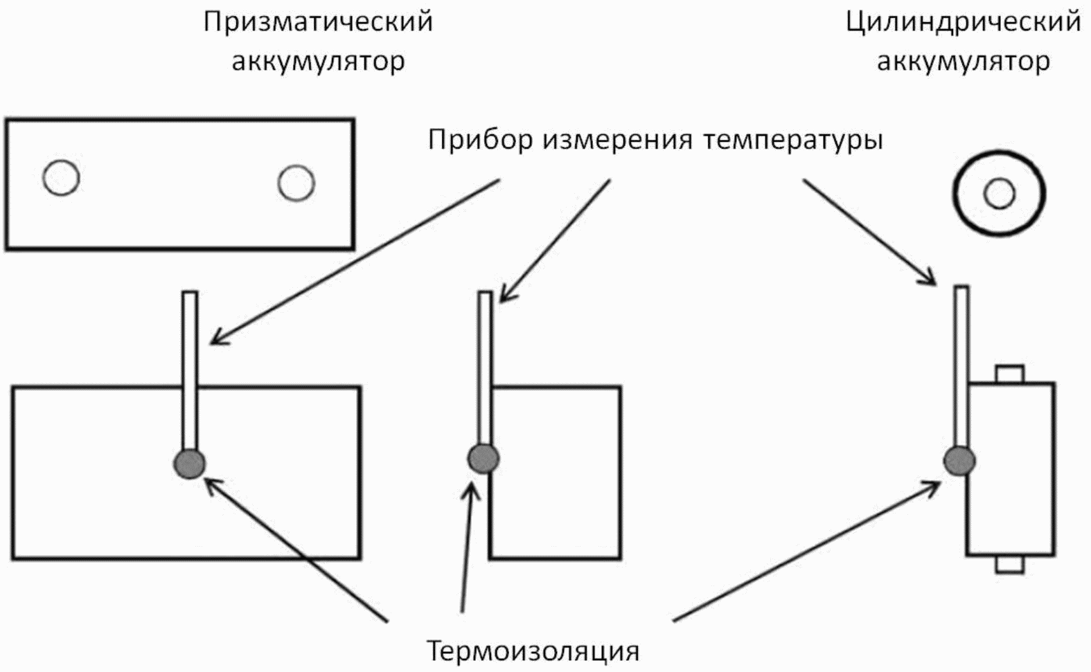 Примеры измерения температуры показаны на рисунке 1. Измерение температуры необходимо проводить в соответствии с инструкцией изготовителя аккумуляторов.