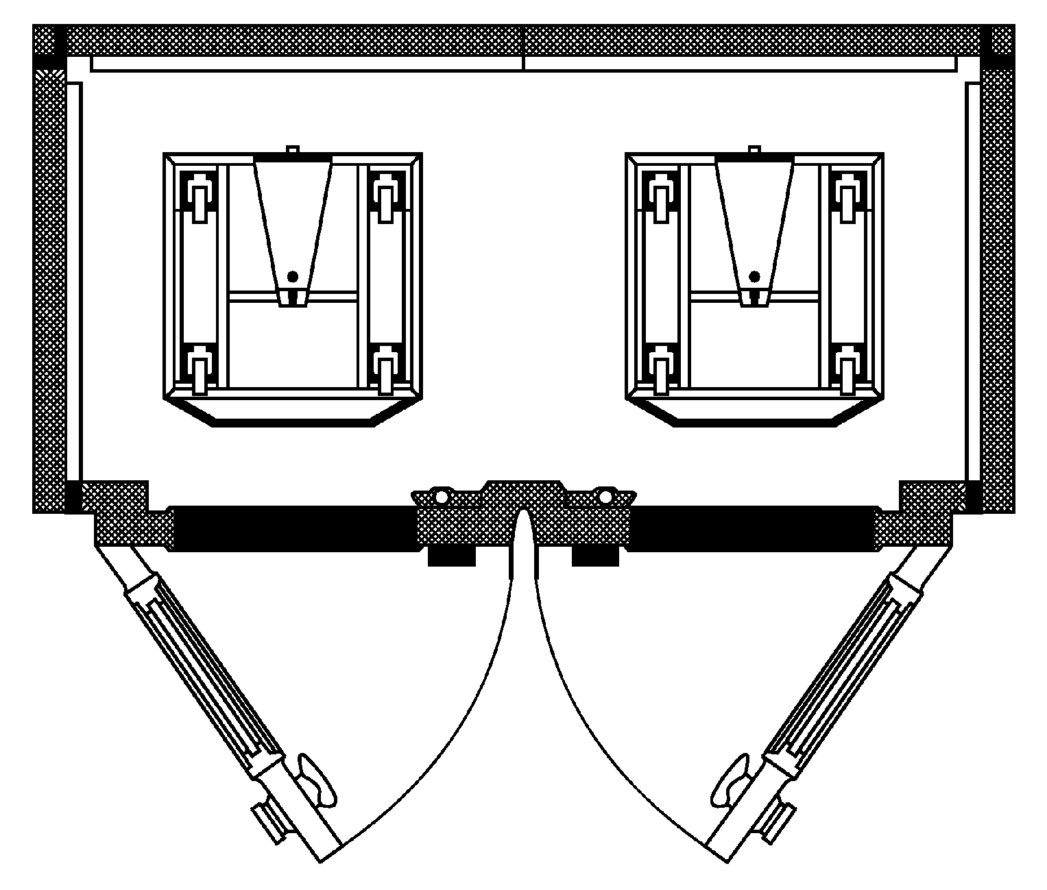 | Приложение 3 (справочное). Пример схемы размещения двух тележек в шкафу для расстойки теста |