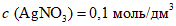 В мерную колбу вместимостью 1000 см3 помещают 16,99 г нитрата серебра, добавляют в 400 - 500 см3 дистиллированной воды. Объем раствора доводят до метки дистиллированной водой.