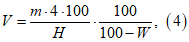 W - массовая доля воды в восковом сырье, %, определенная ускоренным методом по