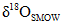 - изотопный состав кислорода относительно международного стандарта SMOW, в промилле;