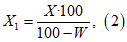 Массовую долю измеряемого показателя (кроме влаги) в пересчете на абсолютно сухое вещество