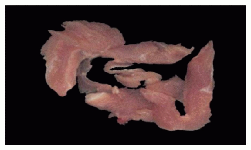 Малое филе с сухожилием (филе из глубокой грудной мышцы) получают путем отделения глубокой грудной мышцы от грудки и грудной кости; состоит из одной целой мышцы с внутренним сухожилием.