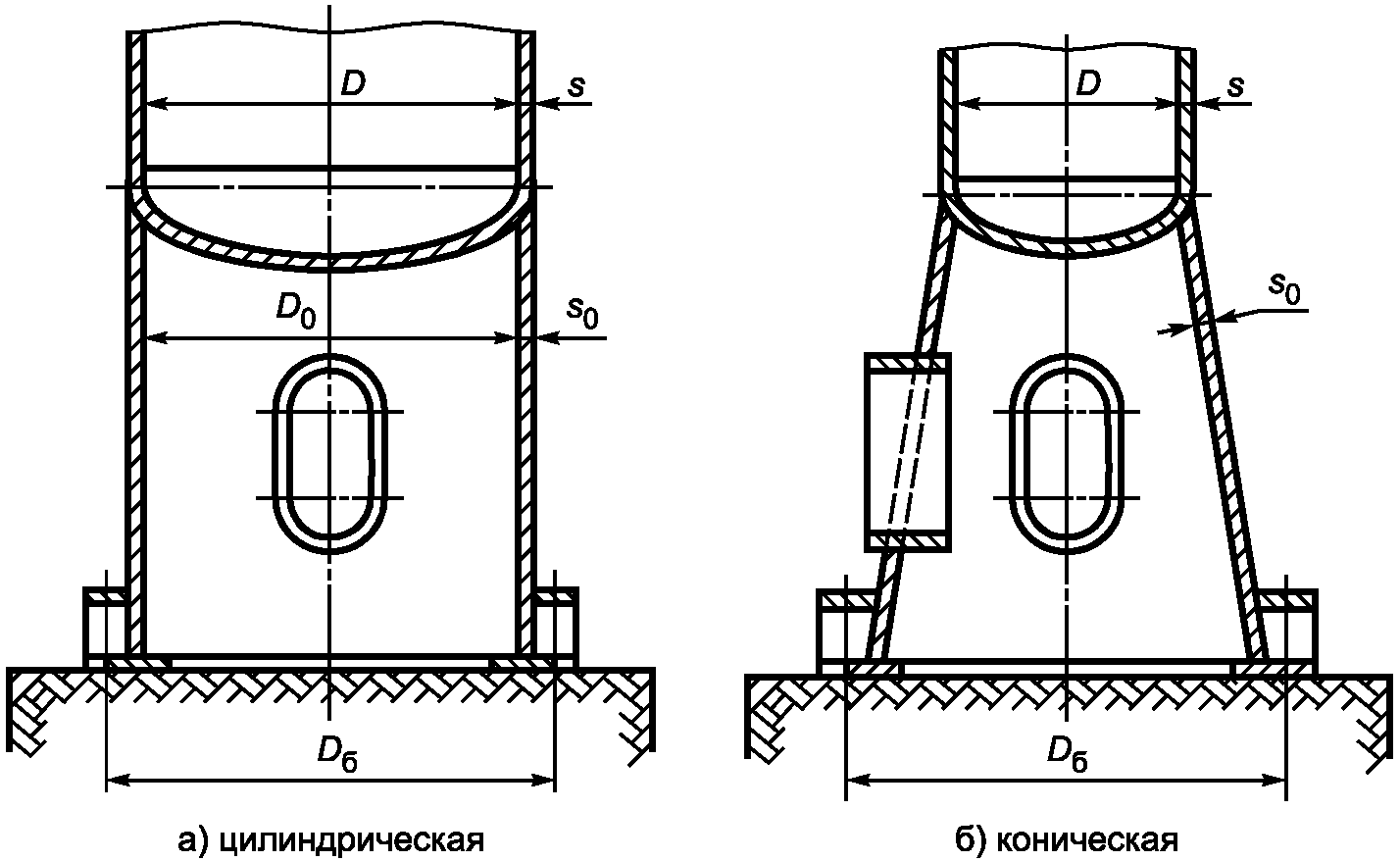6.4. В колонных аппаратах, изготовленных из коррозионно-стойких сталей, допускается использовать цилиндрические или конические опоры из углеродистых сталей при условии, что к корпусу колонны приваривается переходная обечайка из коррозионно-стойкой стали высотой, определяемой расчетом.
