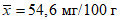 Среднее значение x, мг/100 г | 54,6 | 35,6 | 100,3 | 169,3 | 102,6 | 47,1 |