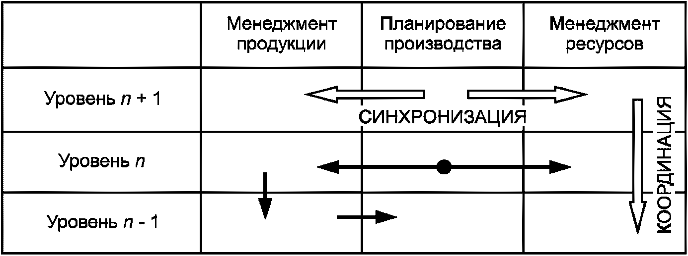 b) действие "планирования производства" - распространяется на решения по преобразованию продукции посредством ресурсов. Основной целью планирования производства является менеджмент производства посредством синхронизации решений, принятых для "менеджмента продукции" и "менеджмента ресурсов";