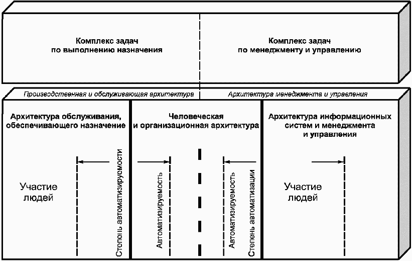 Стандартная архитектура может распространяться на самые различные типы предприятий путем рассмотрения производства как вида потребительской услуги, обеспечивающей концепцию, разработку, проектирование, модификацию, производство и поставку товаров потребителю. Таким образом, область архитектуры, ответственная за выполнение миссии предприятия, представляет собой потребительскую услугу, оказываемую любым предприятием, даже если эта услуга предусматривает поставку потребителю продукции информационного типа.