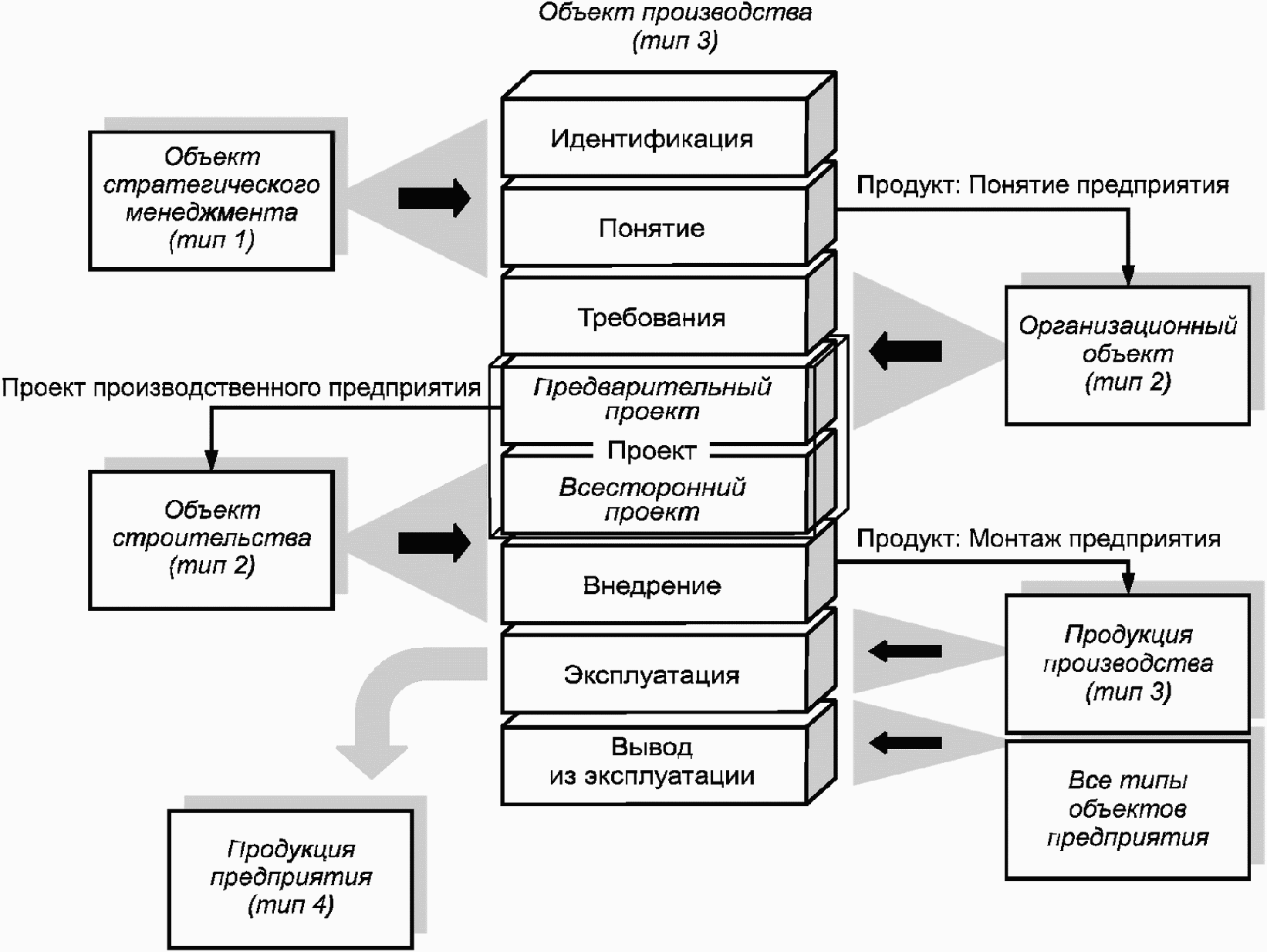 Любое предприятие, независимо от типа, следует своему жизненному циклу от первоначального зарождения идеи предпринимателя через ряд различных этапов, включая разработку, проектирование, создание, эксплуатацию и обслуживание, модернизацию или устаревание и окончательную утилизацию.