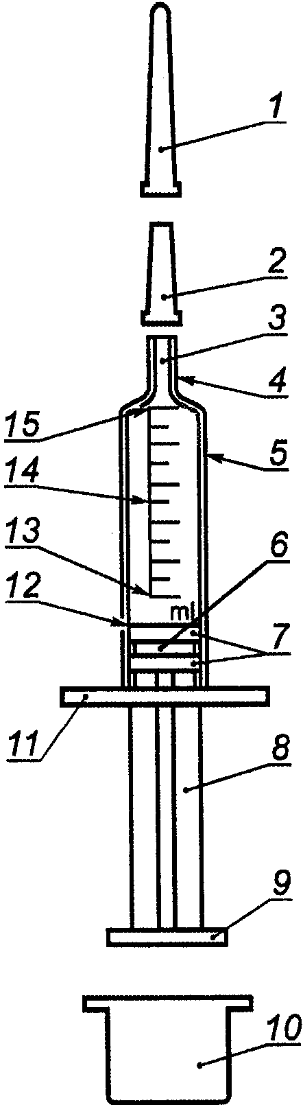 В настоящем стандарте применены следующие термины с соответствующими определениями (схематическое изображение шприца показано на