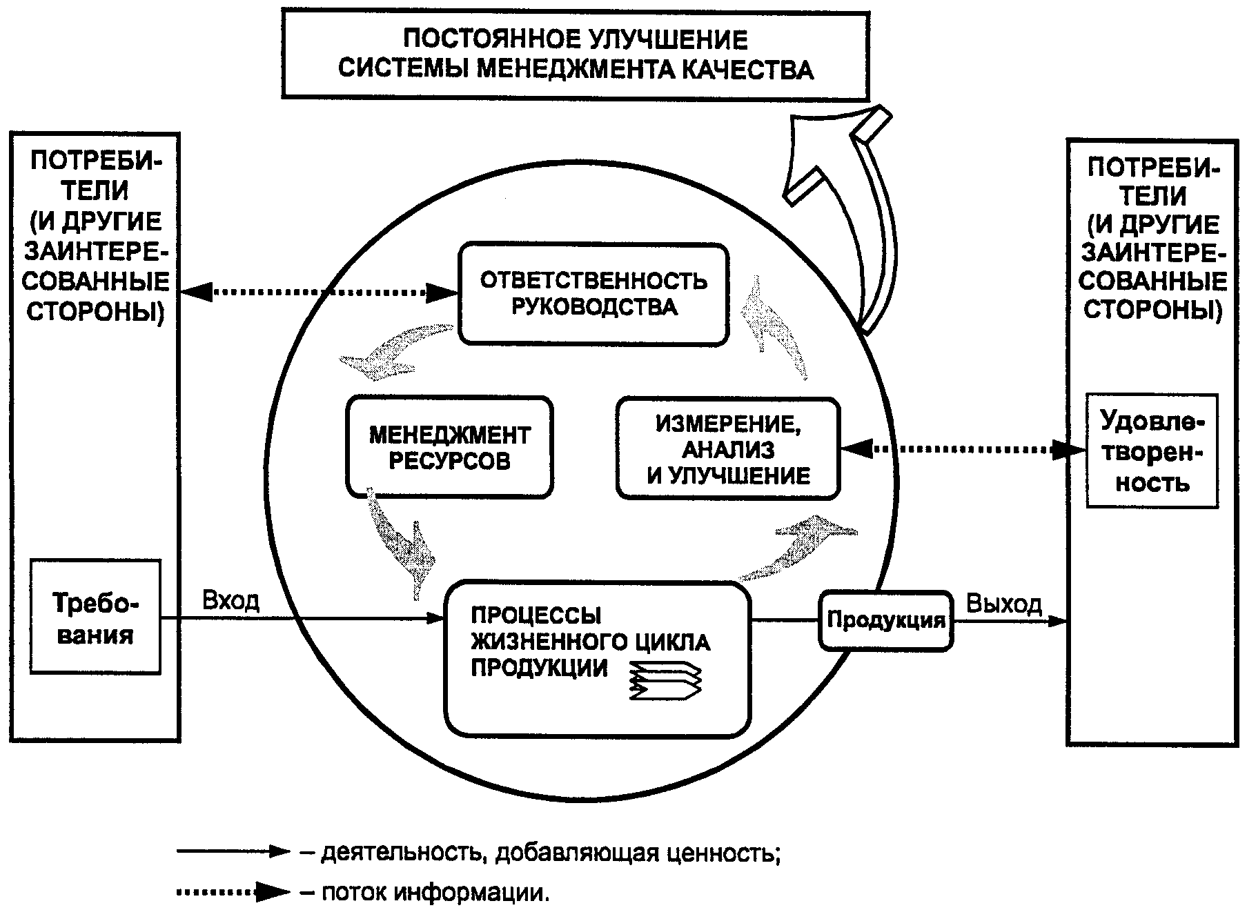 Внедрение систем менеджмента качества побуждает организации анализировать требования потребителей, определять процессы, способствующие созданию продукции, приемлемой для потребителей, а также поддерживать эти процессы в управляемом состоянии. Система менеджмента качества может быть основой постоянного улучшения с целью увеличения повышения удовлетворенности как потребителей, так и других заинтересованных сторон. Внедрение данной системы обеспечивает организацию и потребителей уверенностью в ее способности поставлять продукцию, полностью соответствующую требованиям.