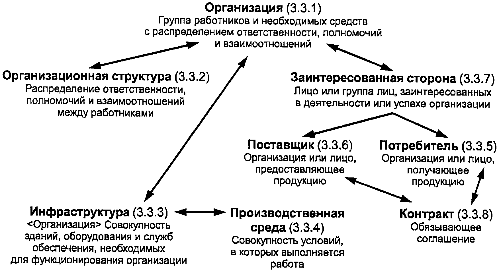 Рисунок 1 иллюстрирует основанную на процессном подходе систему менеджмента качества, описанную в семействе стандартов ИСО 9000. На нем показано, что заинтересованные стороны играют существенную роль в предоставлении организации входных данных. Наблюдение за удовлетворенностью заинтересованных сторон требует оценки информации, касающейся восприятия заинтересованными сторонами степени выполнения их потребностей и ожиданий. Модель, приведенная на рисунке 1, не показывает процессы на детальном уровне.