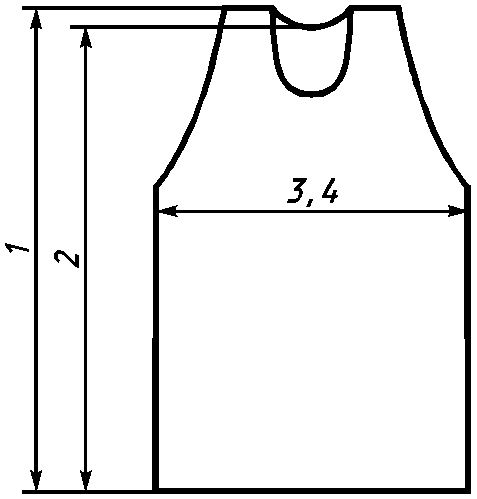 изделия; 3, 4 - ширина переда и спинки по прямой