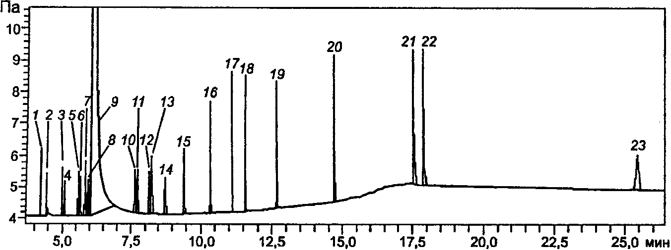 19 - 1-гексанол; 20 - бензальдегид; 21 - бензиловый спирт;