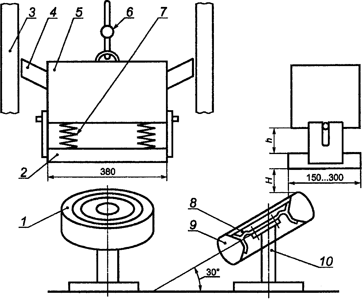 8 - диск; 9 - шина; 10 - опора; H - высота расположения