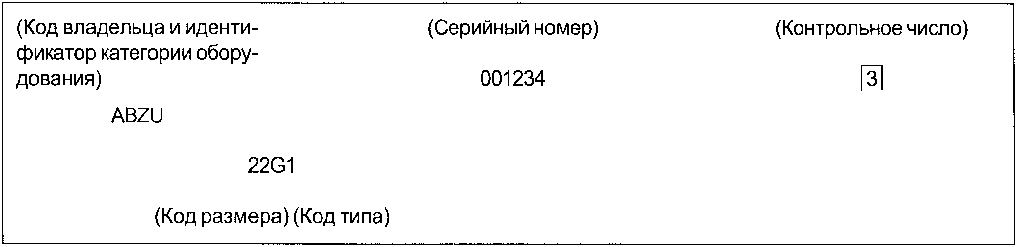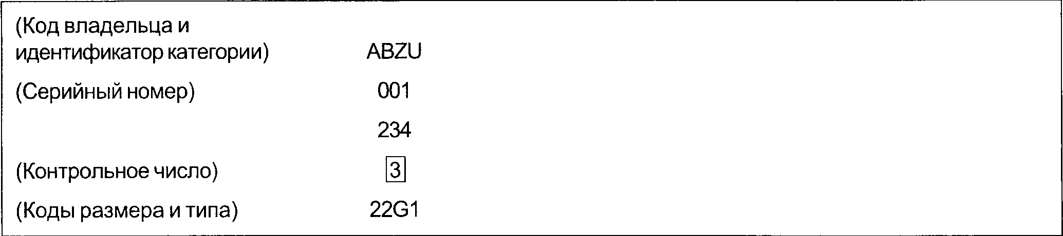 b) систему кодирования данных о типе и размере контейнера с помощью соответствующих знаков;