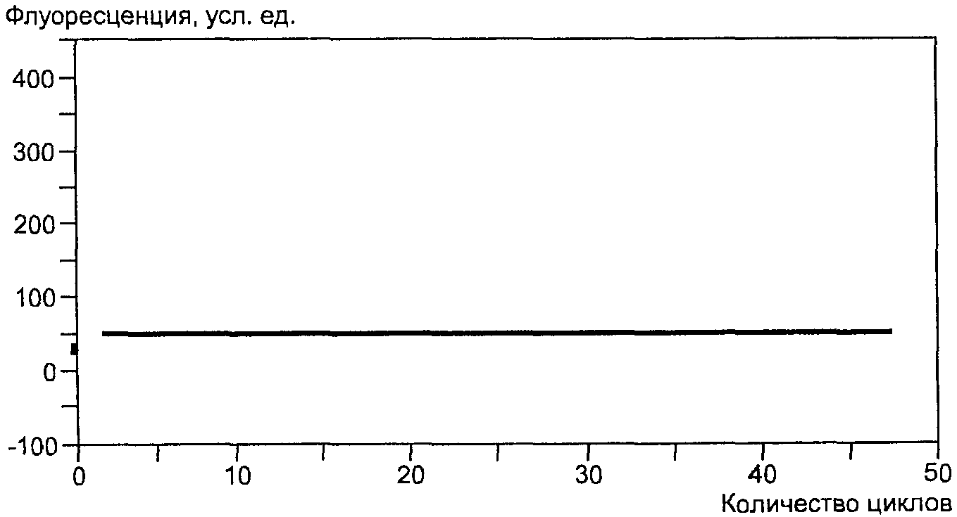 В отрицательном контроле не должно происходить накопления продукта ПЦР, поэтому построенный прибором график должен иметь вид прямой линии. Подобная картина должна наблюдаться во всех отрицательных образцах (рисунок Б.4).