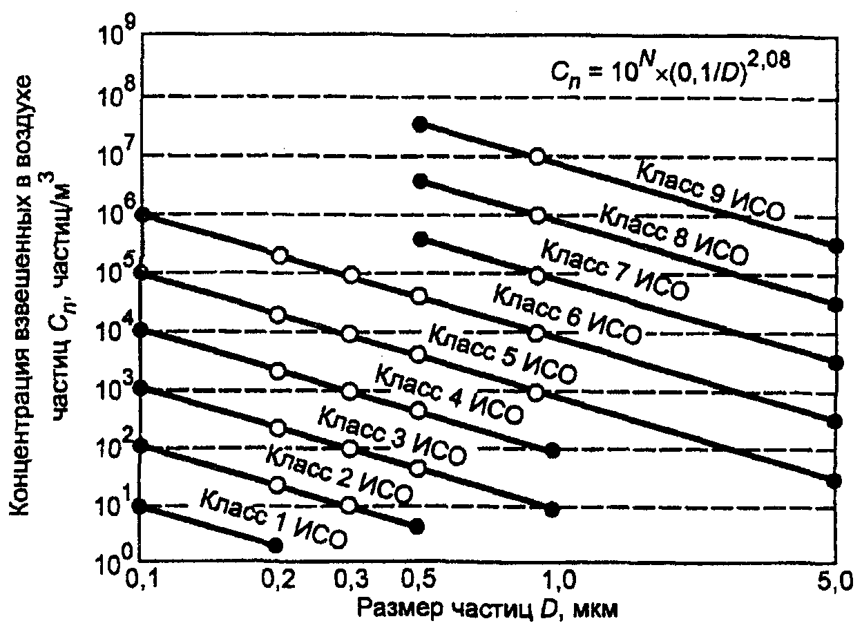 Чистота по взвешенным в воздухе частицам обозначается классификационным числом N. Максимально допустимая концентрация частиц