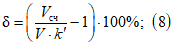 Примечание. Допускается оценка погрешности счетчика величиной выраженного в процентах отношения эталонного объема к объему газа, зарегистрированного счетчиком, называемой "погрешностью учета  " и позволяющей определять, какое действительное количество газа прошло через счетчик по сравнению с зарегистрированным счетчиком объемом. Так, например, если погрешность учета составляет 101%, то это означает, что на каждые 100 м3 газа, зарегистрированных счетчиком, в действительности через счетчик прошло потребителю 101 м3 газа. Связь между относительной погрешностью счетчика  и погрешностью учета  выражается формулой |