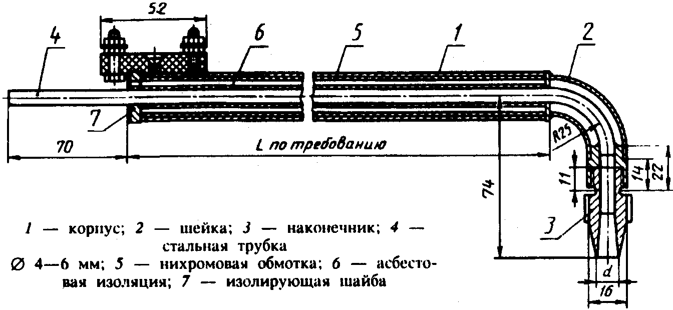 ; 5 - нихромовая обмотка; 6 - асбестовая