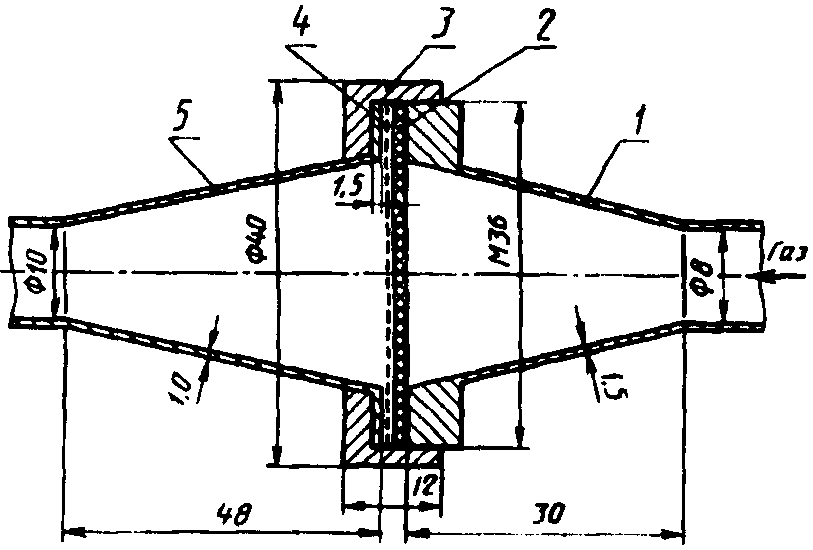 1 - диффузорный участок; 2 - мембранный фильтр; 3 - накидная