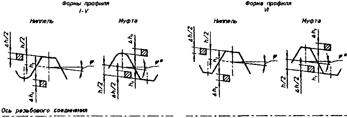 - предельное отклонение высоты профиля резьбы ниппеля и муфты;