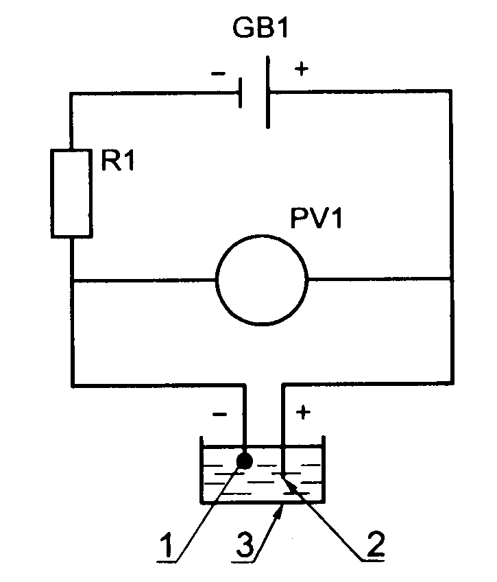 Поляризацию осуществляют от источника постоянного тока через резистор или набор резисторов, присоединяя к платиновому электроду отрицательный полюс источника питания. Иономер включают в режиме милливольтметра. Электроды погружают в раствор соляной кислоты.