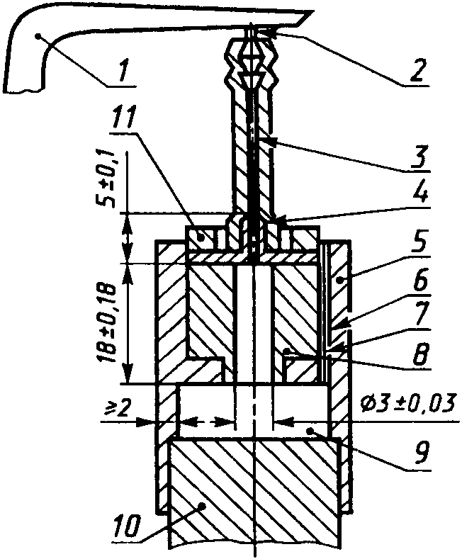 1 - трубка; 2 - ушной вкладыш; 3 - опорная плоскость