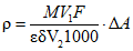 , г/см3, вычисляют в соответствии с законом Ламберта-Бера по формуле