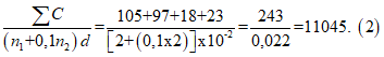 - сумма колоний во всех чашках, которая подсчитана в двух последовательных разведениях;
