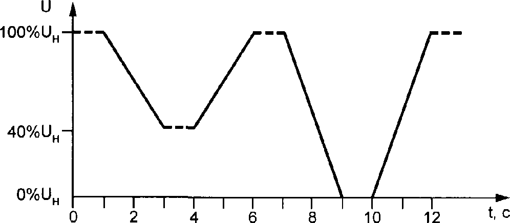 Примечание. Провал напряжения начинается при переходе через нуль и продолжается в течение 10 периодов.
