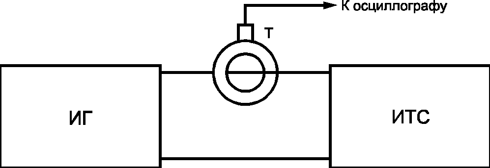 Генератор с пиковым нагрузочным током меньше &400 А& может использоваться при испытаниях, если пиковый потребляемый ток ИТС меньше, чем нагрузочная способность ИГ по пиковому току. Схема, приведенная на рисунке В.2, показывает пример измерения пикового потребляемого тока ИТС.