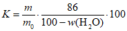 Содержание сырой клейковины K, % к массе навески [мука влажностью 14,0% (по массе)], вычисляют по формуле