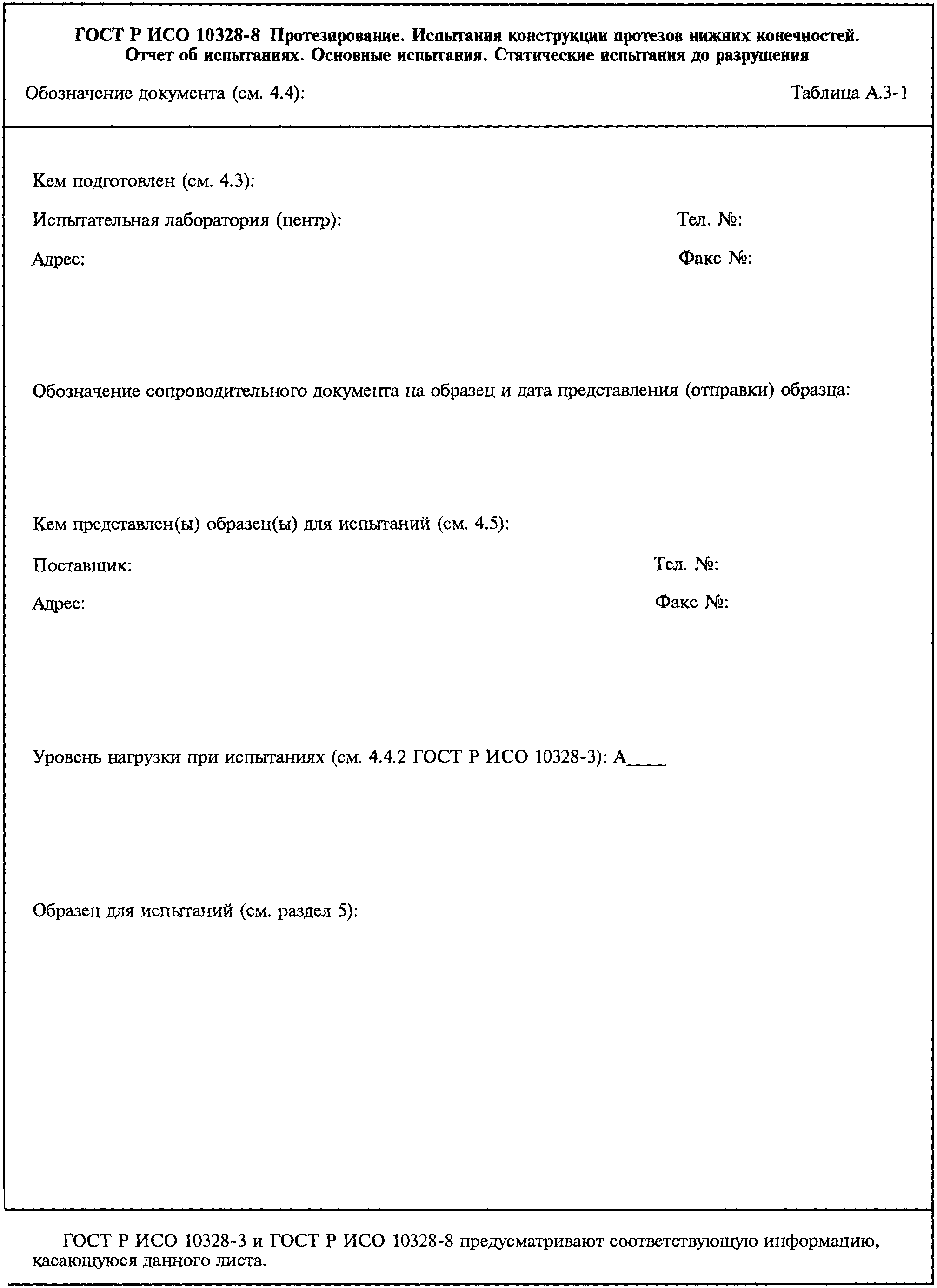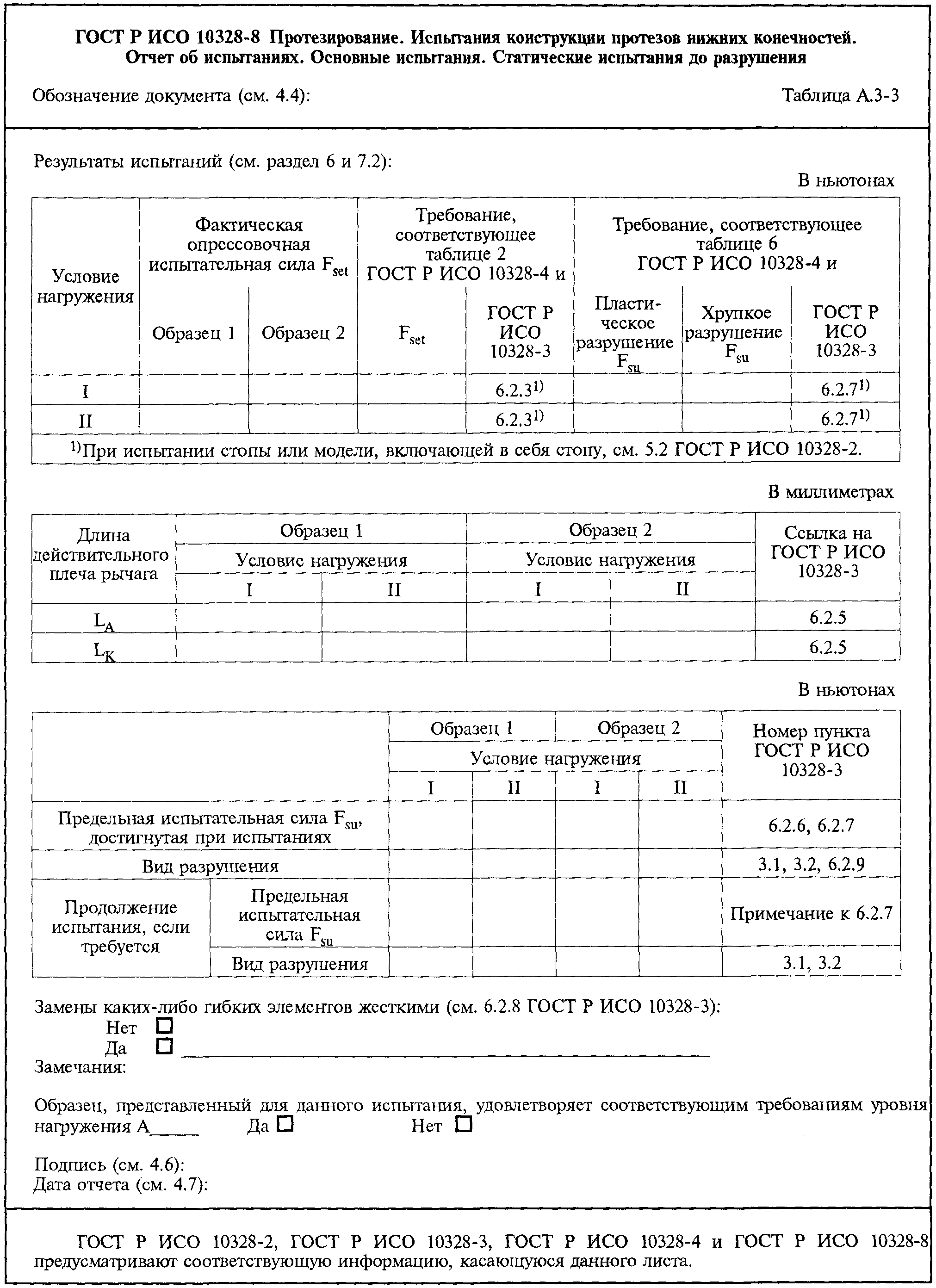 3 Настоящий стандарт представляет собой аутентичный текст международного стандарта ИСО 10328-8-96 "Протезирование. Испытания конструкции протезов нижних конечностей. Часть 8. Отчет об испытаниях"