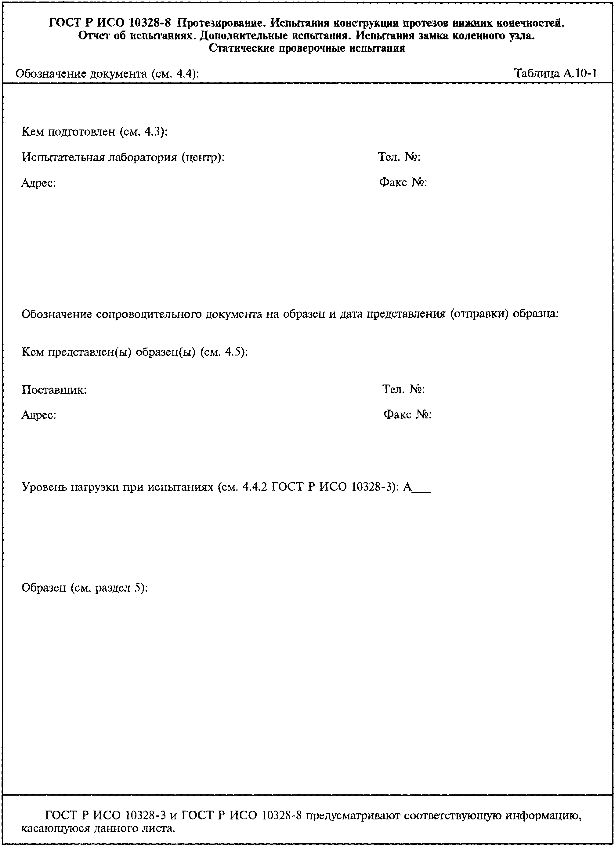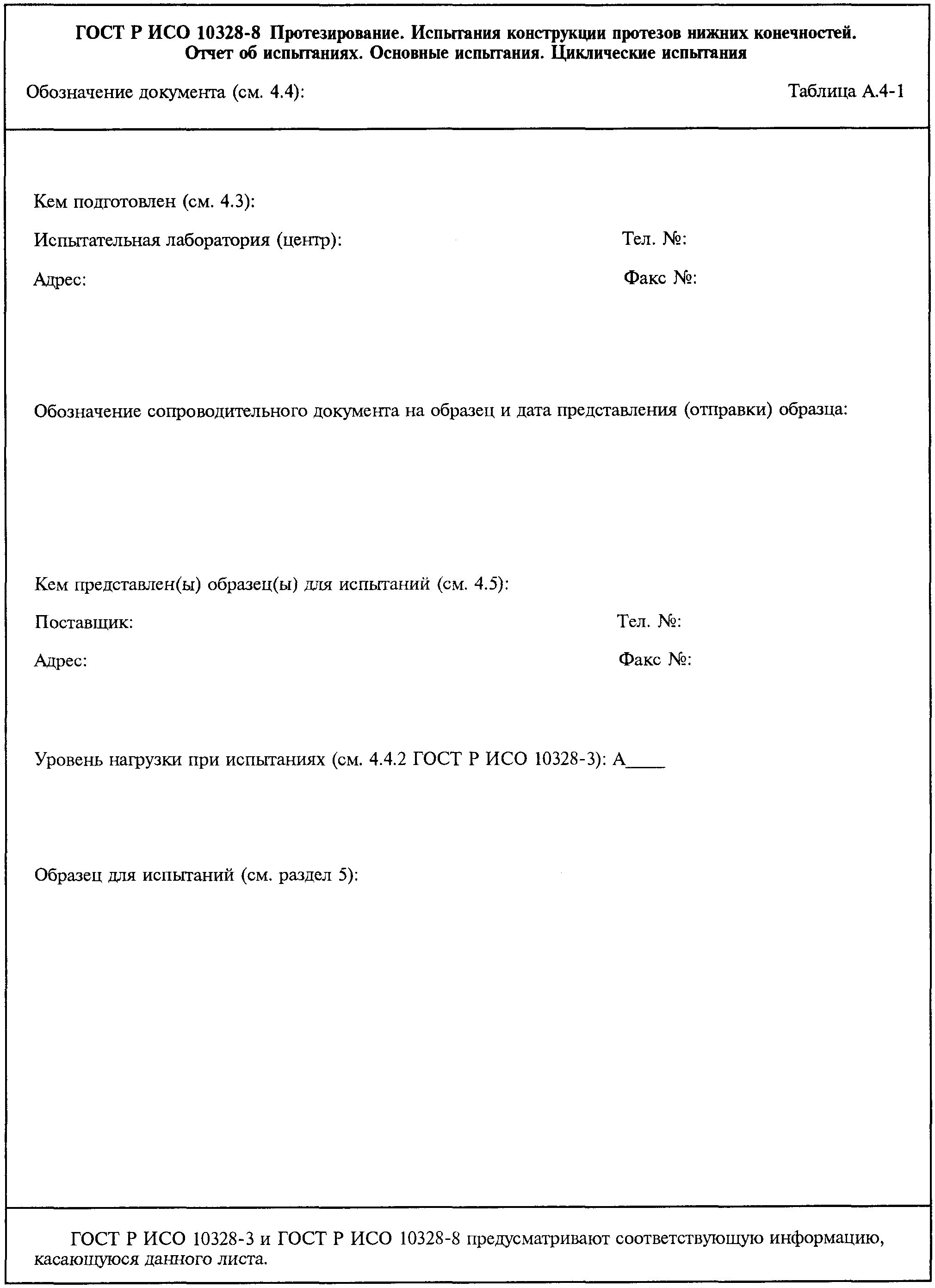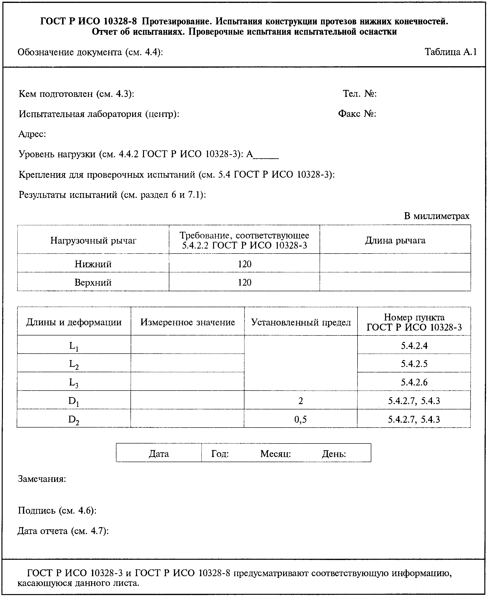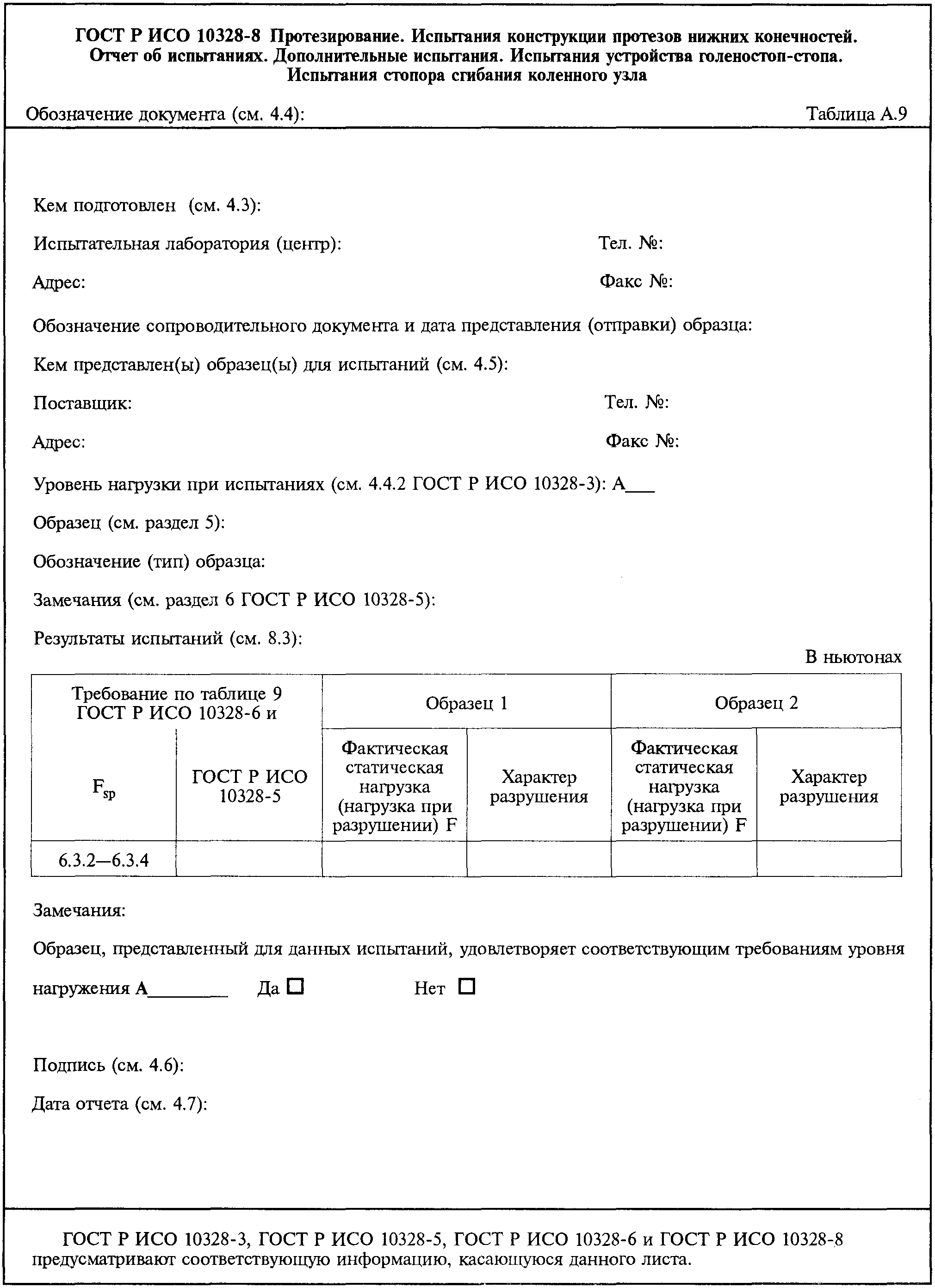 "ГОСТ Р ИСО 10328-8-98. Государственный стандарт Российской Федерации. Протезирование. Испытания конструкции протезов нижних конечностей. Часть 8. Отчет об испытаниях"