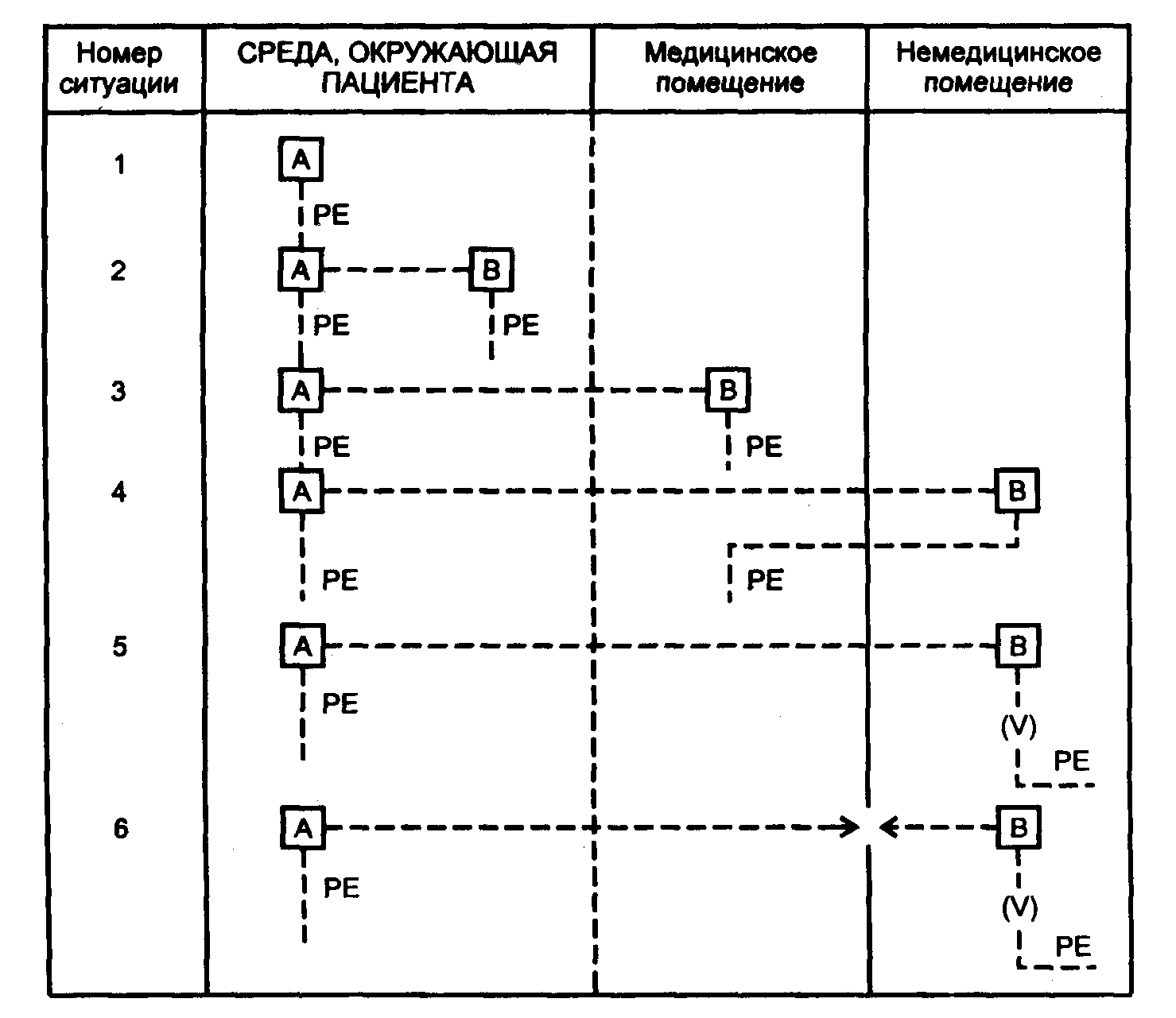 5a | ГОСТ Р серии 50267/X - изделие типа B или BF, или CF по ГОСТ Р 50267.0 | ГОСТ Р серии 50267/B - изделие типа B по ГОСТ Р 50267.0) при наличии соединения с пациентом | Для A - решение P или S (возможен заземляющий контур) |