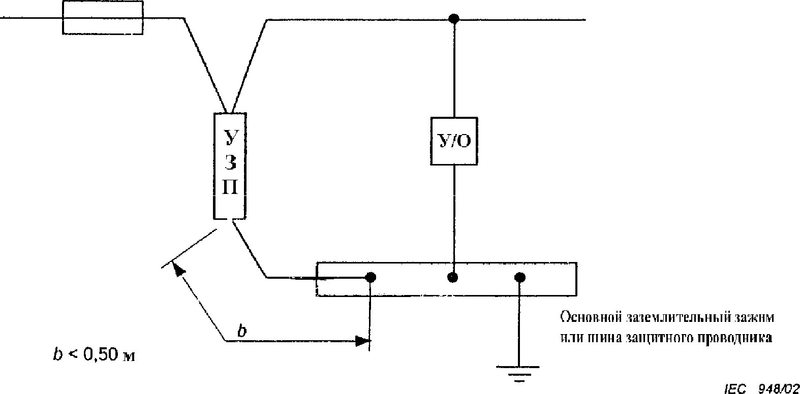 6 | Заземляющее соединение (заземляющий проводник) устройства защиты от перенапряжений | УЗП | Устройство защиты от перенапряжений |