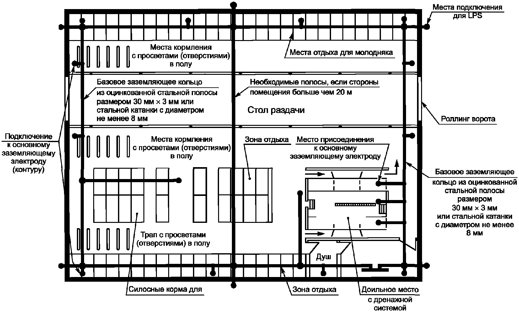 заземляющего электрода в коровнике