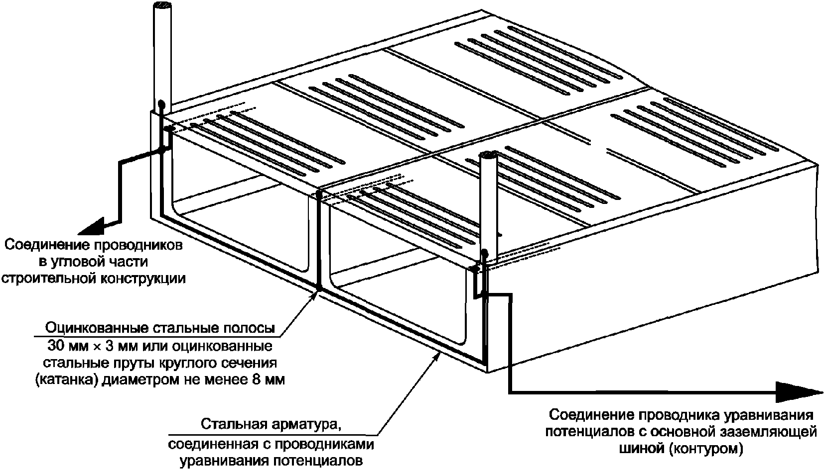 Рисунок A3. Пример уравнивания потенциалов в бетонной