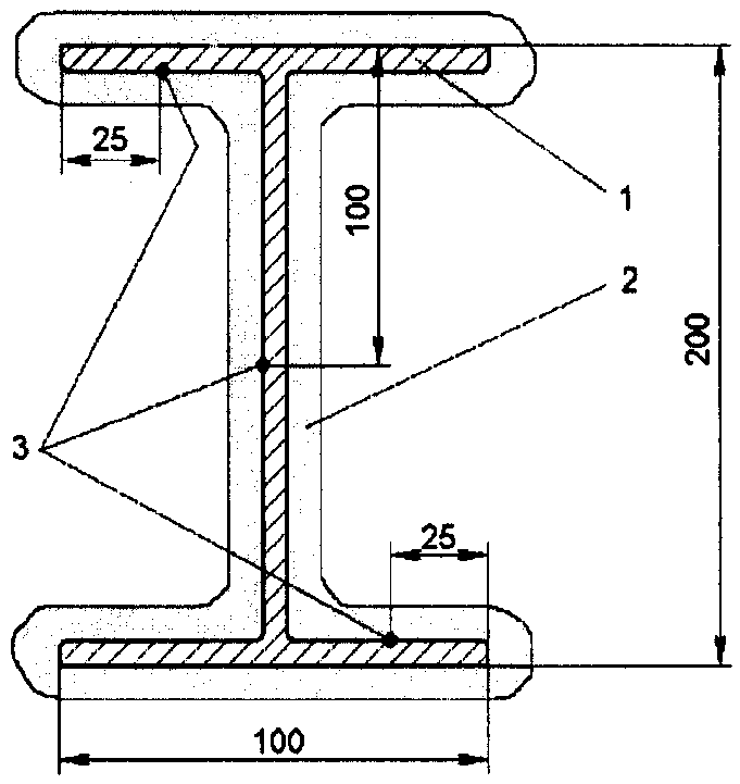 В.3.2. В качестве образца, на который наносится (монтируется) средство огнезащиты, используется стальная балка с формой профиля в соответствии с 5.3.2 настоящего стандарта и длиной (3200 +/- 10) мм. Приведенная толщина металла стальной балки определяется непосредственно перед каждым испытанием.