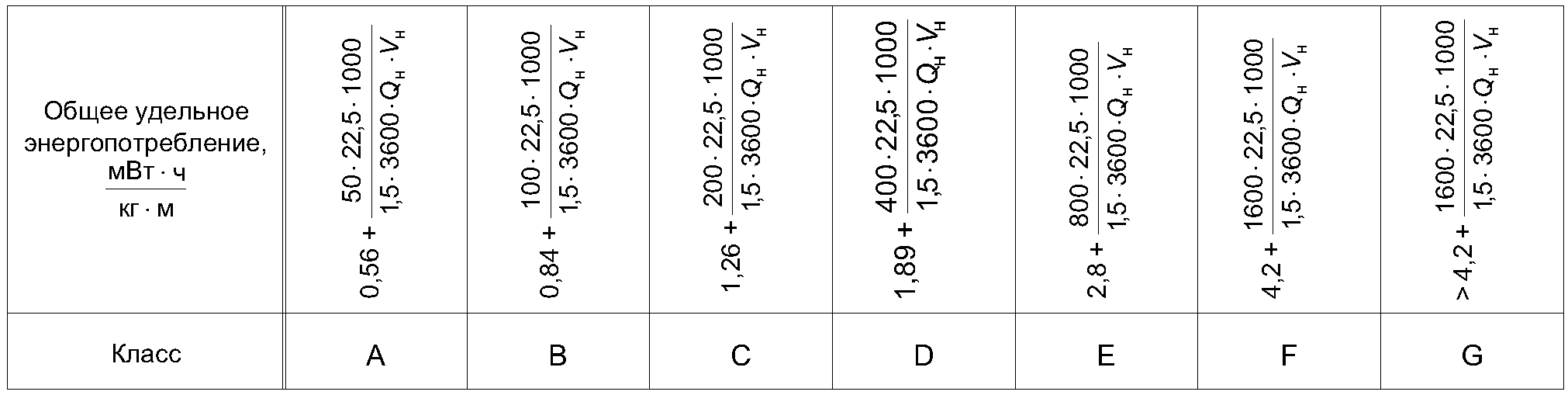 3.4. Класс энергопотребления лифта в режиме движения: уровень удельного энергопотребления в режиме движения, устанавливаемый в разделенном на 7 классов диапазоне от минимального (класс A) до максимального (класс G) энергопотребления.