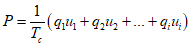 3.3.6 мощность разряда P (discharge power P): Производная величина, являющаяся суммой произведений кажущихся зарядов с амплитудой qi на соответствующие мгновенные значения напряжения возникновения ЧР ui в течение интервала времени измерения ЧР Tc