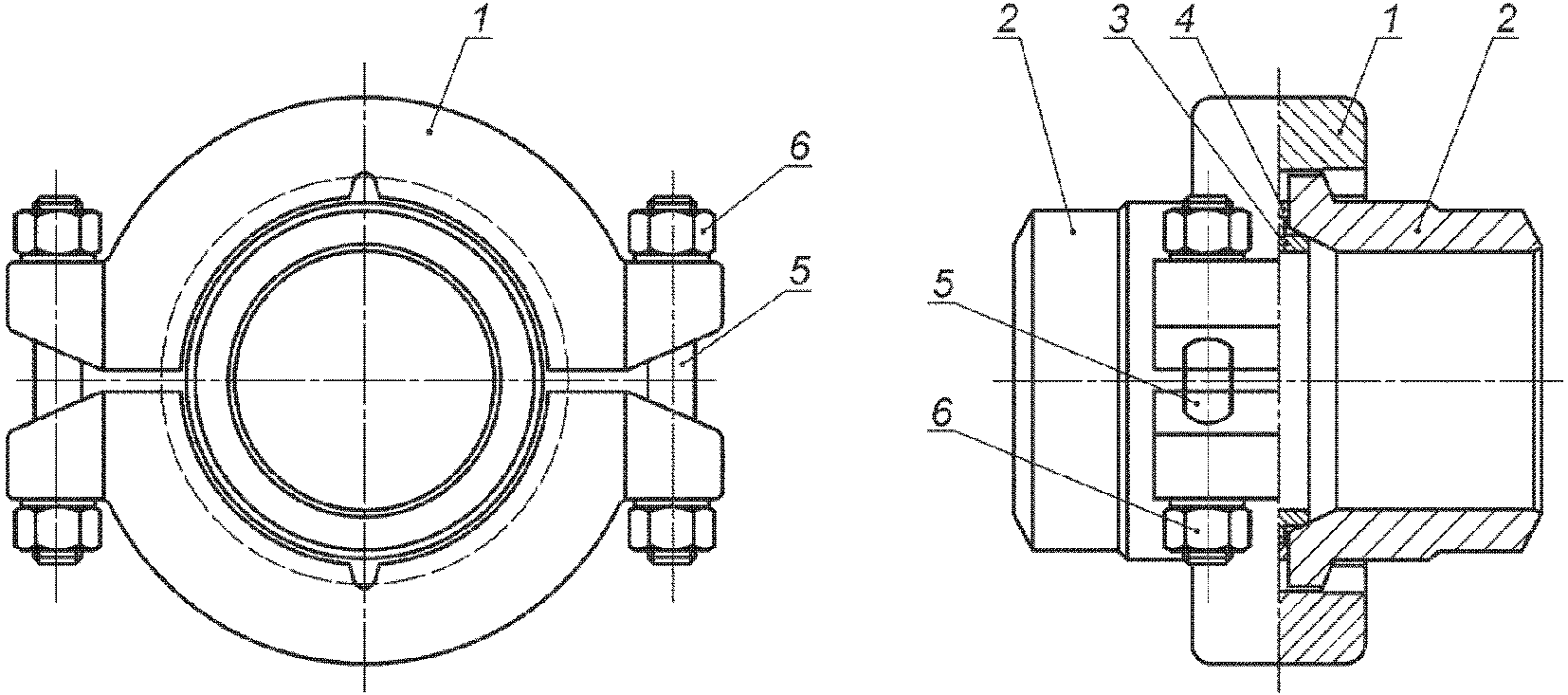 3.1.7. Разъемное соединение с принудительным уплотнением: разъемное соединение, герметичность в котором достигается предварительным нагружением уплотнительных поверхностей усилием, превышающим по величине требуемое для обеспечения герметичности при действии внутреннего давления.