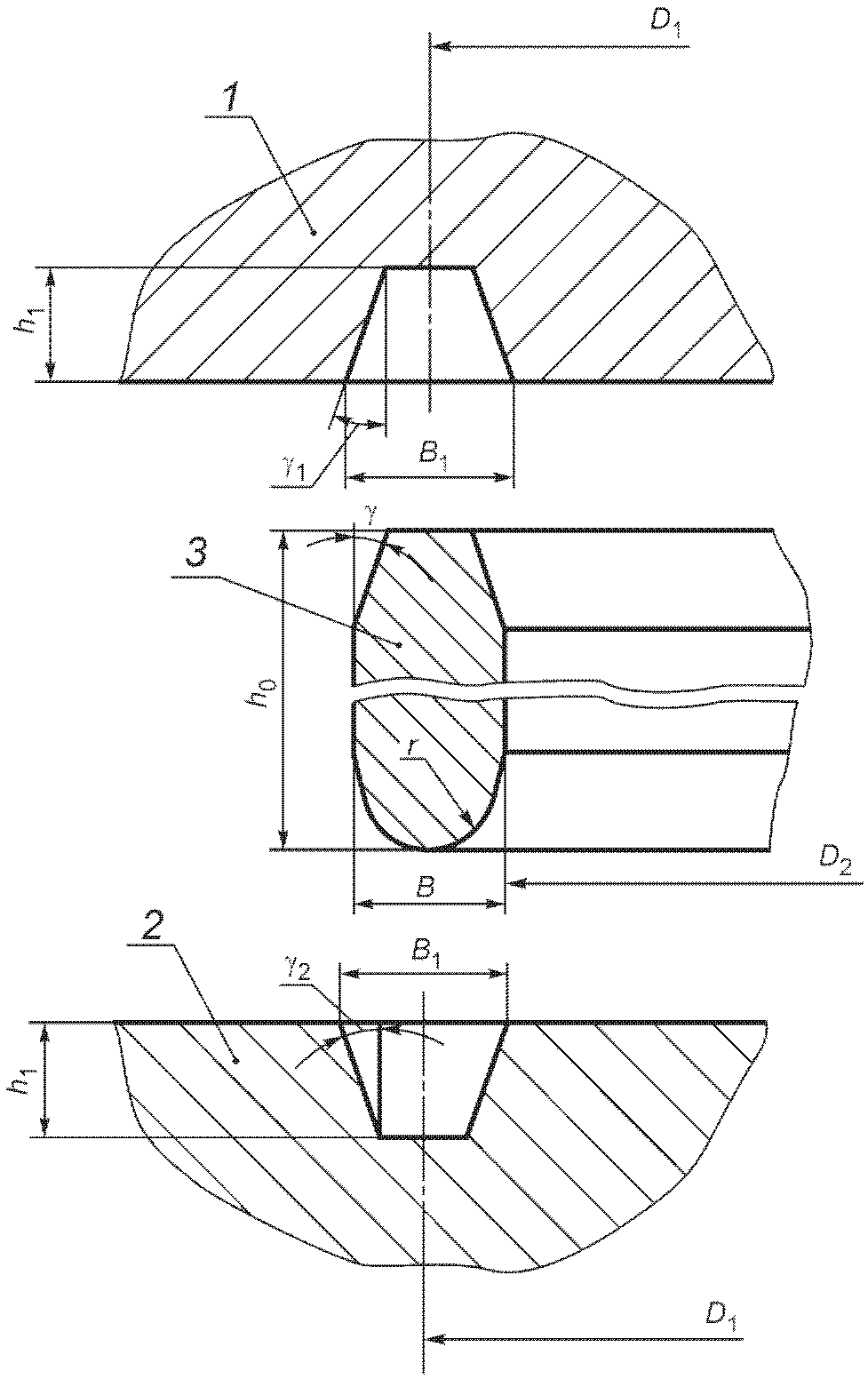 3.1.8. Разъемное соединение с самоуплотнением: разъемное соединение, в котором герметичность достигается предварительным нагружением уплотнительных поверхностей усилием, достаточным для обеспечения герметичности соединения в начальный период подъема давления.