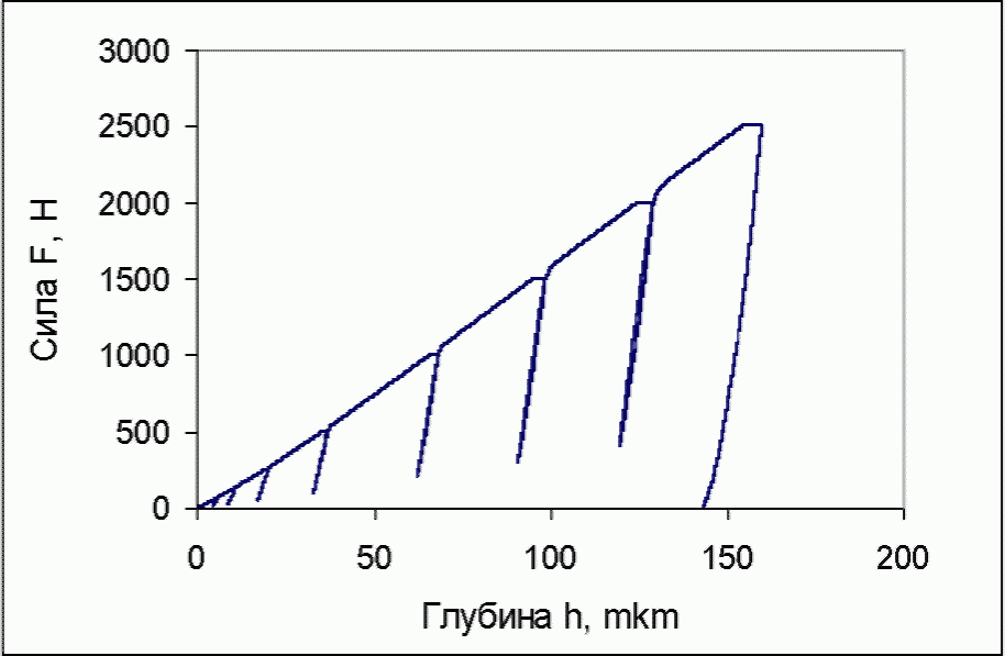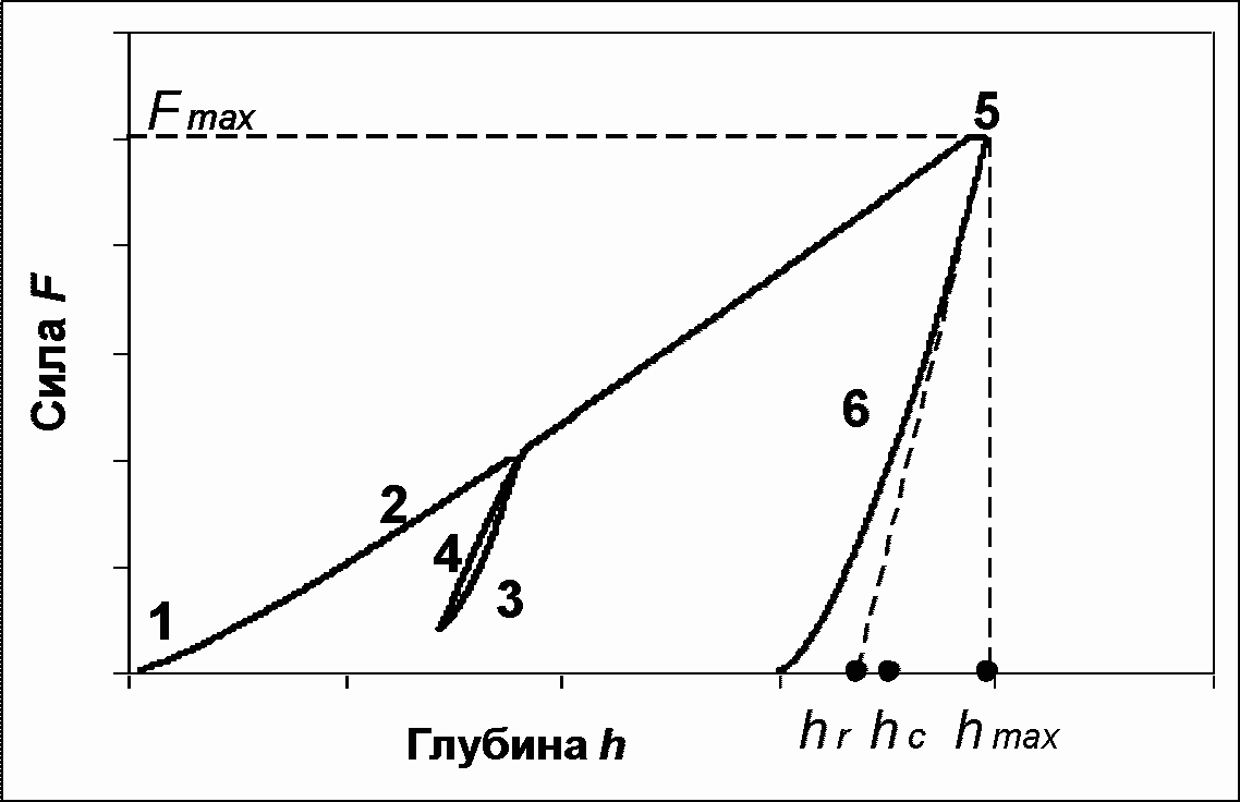 h0 | - нулевая точка (точка первого контакта индентора с образцом), мм; |