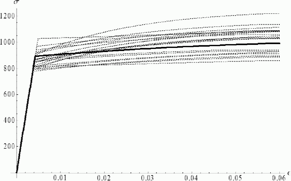 3.1 диаграмма "напряжение - деформация": Зависимость напряжения от деформации, построенная с учетом деформации образца в ходе испытаний на одноосное растяжение;