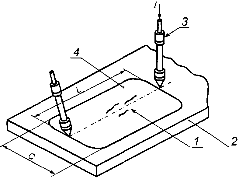 К.3.1. Контролируемый участок при проверке сварного шва с применением электромагнита