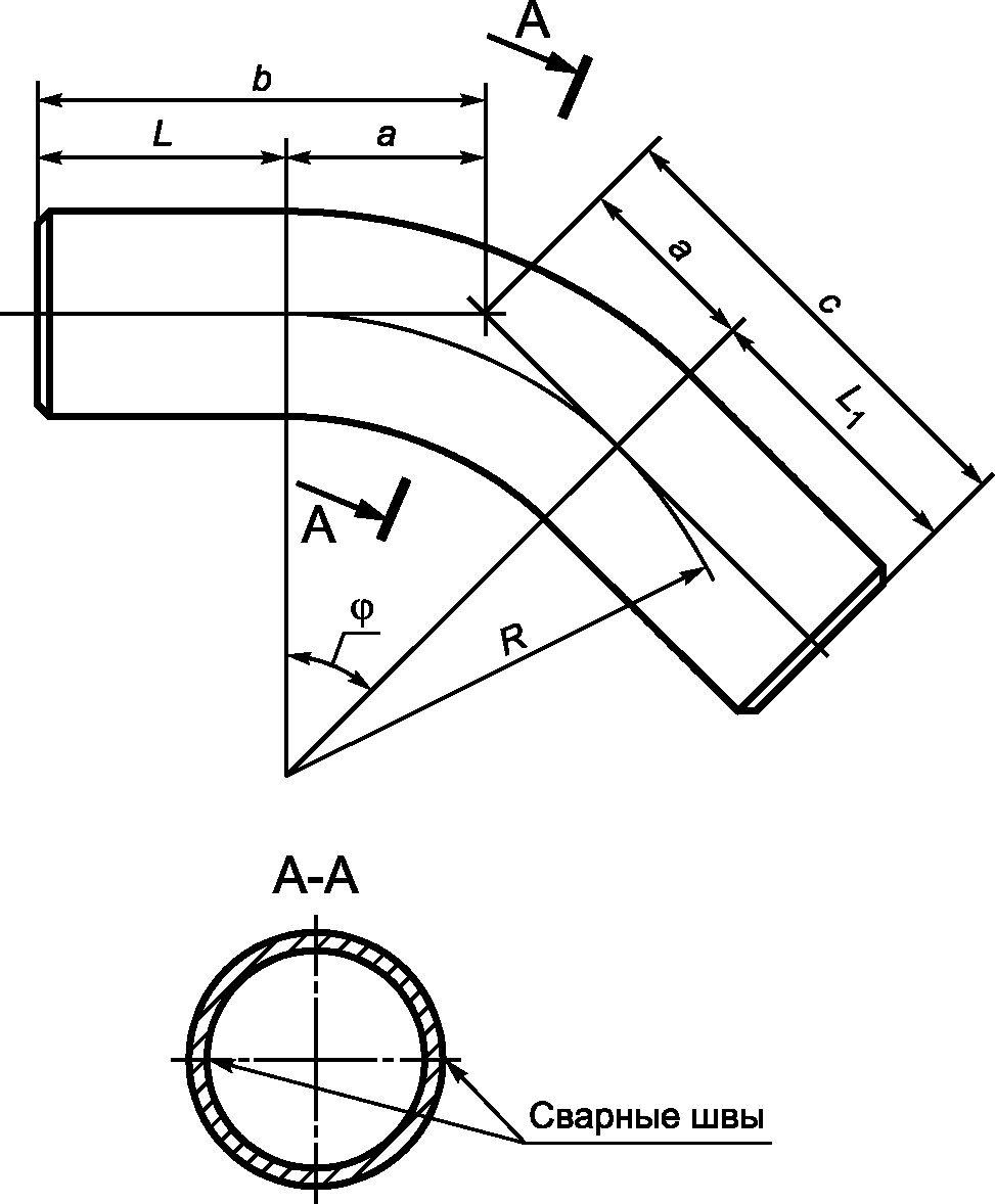 3.18 строительная длина отвода: Расстояние от торца отвода до пересечения его осей.