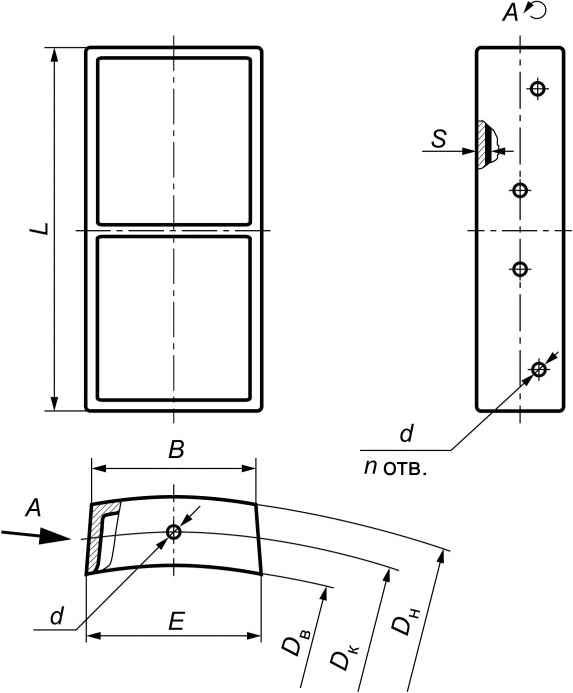 4. Предприятие-изготовитель имеет право разрабатывать КД на выпускаемые тюбинги, которые могут различаться некоторыми конструктивными элементами, не влияющими на основные размеры и параметры. Примеры простановки основных размеров в чертежах и документах в качестве привязочных показаны в