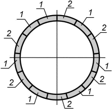 3.1 тюбинг: Элемент крепи, представляющий собой цилиндрический сегмент с круговыми радиальными и поперечными ребрами жесткости.