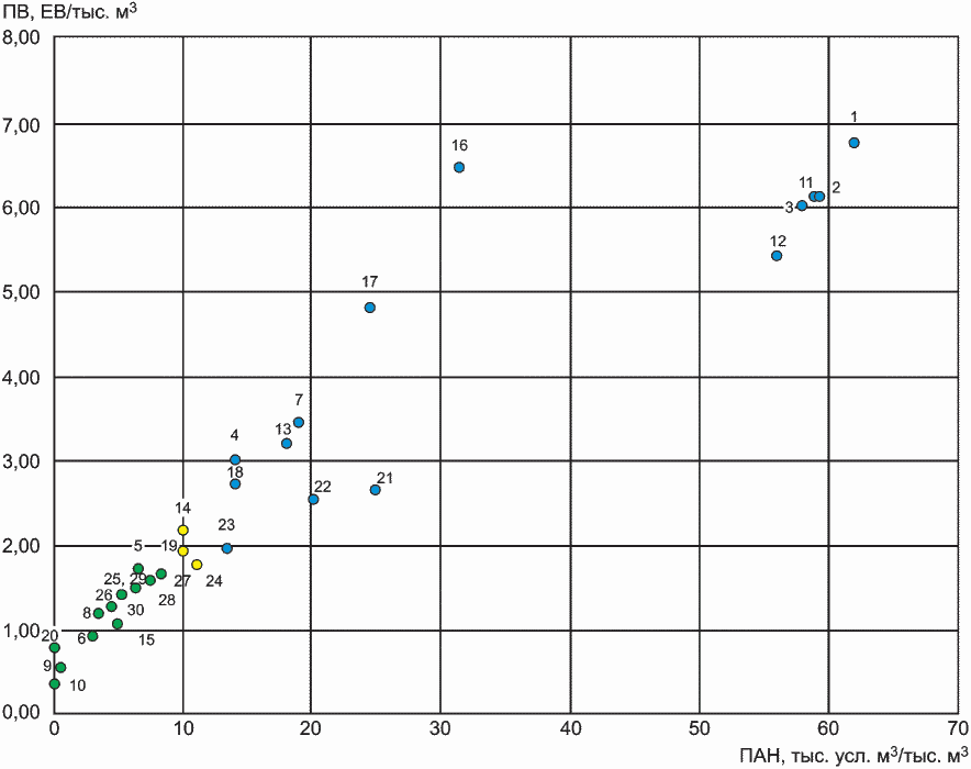 Рисунок Г.1 - Точечная диаграмма зависимости ПАН от ПВ